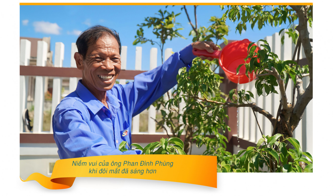 Bà Hoàng Thị Thiểu, 78 tuổi, ở thôn Phú Hội chia sẻ thêm, mỗi khi nhìn một vật gì chỉ được dăm ba phút, các chấm đen như ruồi bay lại lởn vởn như một vật cản vô cùng khó chịu. Nỗi lo lớn dần lên khi bác sỹ kết luận bị đục thủy tinh thể cần phải phẫu thuật. Bà cảm thấy lo lắng với việc mổ vì hiện tại bà đang mắc căn bệnh đau thần kinh tọa, chưa kể con cháu ở xa. Bệnh tình trở nặng không có người chăm sóc. Nhưng với khát khao tìm lại ánh sáng, bà quyết định đến mổ tại Bệnh viện Mắt Quảng Trị và niềm vui đã vỡ òa khi tìm lại được ánh sáng. Ông Phan Đình Phùng, 74 tuổi, thôn Hà Tây, xã Triệu An cho biết: “Mọi lịch trình trong cuộc sống của tôi bị đảo lộn từ ngày mắt mờ. Lúc nào cũng thấy một đám mây mờ, mắt cứ lòa lòa. Muốn đọc báo, nghe thông tin thì đành nhờ vợ, nhờ con, nhờ cháu… rất phiền. Rồi lại suy nghĩ, nếu nhỡ, một khi mình không nhìn thấy gì nữa thì… mình lại trở thành gánh nặng cho vợ, con”. Nhiều bà con cho biết, kể từ khi bị đục thủy tinh thể, làm gì cũng khó khăn, ngay cả những việc đơn giản như xem ti vi, đọc báo hay tập thể dục hàng ngày. Ở bên con cháu mà không thể nhìn rõ khuôn mặt, dáng người từng đứa… Thế nên căn bệnh này không chỉ ảnh hưởng đến sinh hoạt thường ngày mà còn khiến tâm lý nhiều người trở nên thay đổi theo hướng tự ti và buồn chán. Vì thế, từ ngày mắt sáng rõ trở lại, ông Phùng đã trở thành “tư vấn viên” rất tích cực cho những người mắc bệnh này. “Vì bản thân mình đã trải qua nỗi sợ vì đục thủy tinh thể rồi nên mình hiểu và thương những người mắc căn bệnh này giống mình. Được cho bạc, cho vàng không quý bằng có đôi mắt sáng” - ông Phùng bộc bạch.