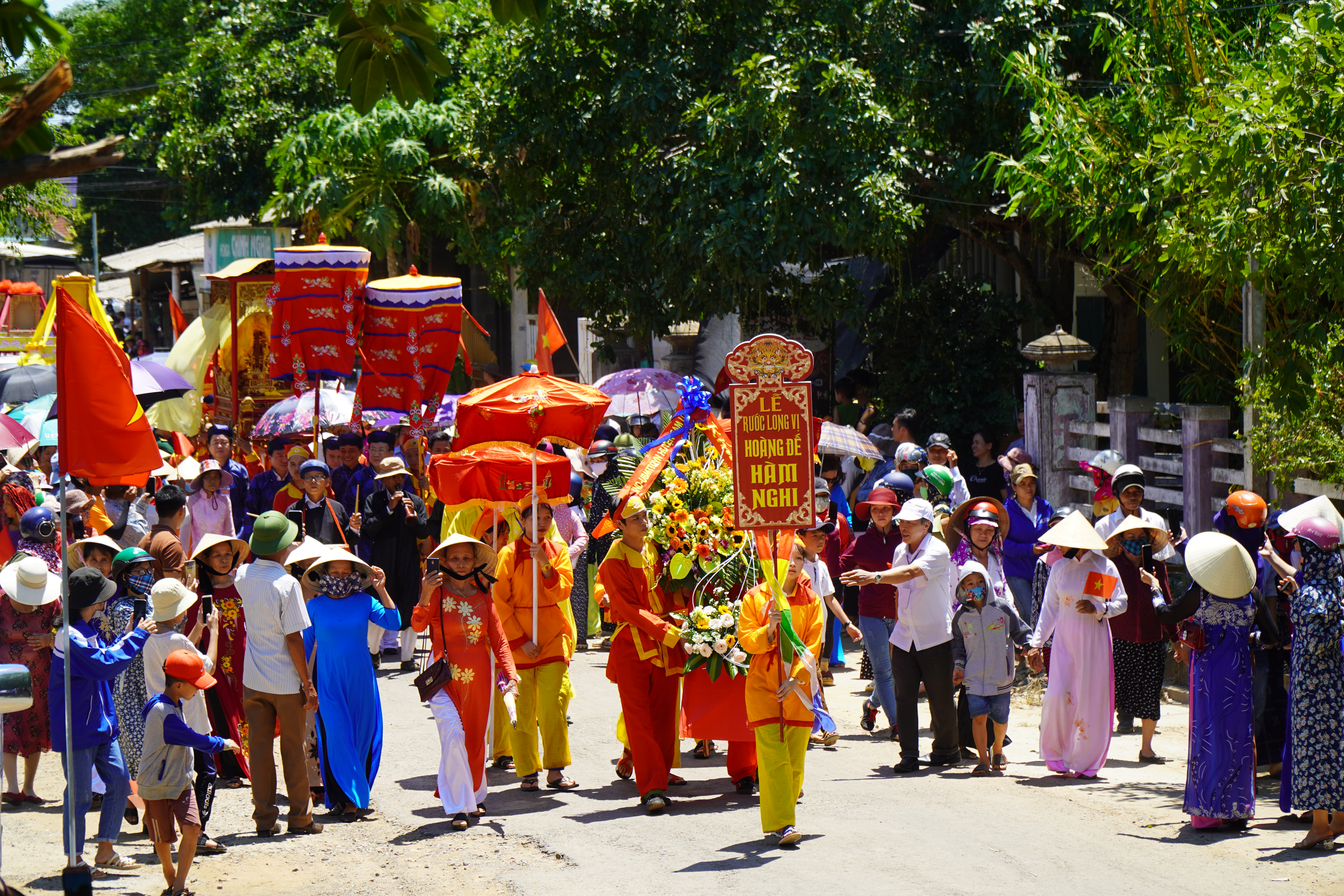 Người dân huyện Cam Lộ nghinh rước Long vị vua Hàm Nghi về thành Tân Sở - Ảnh: Thanh Long