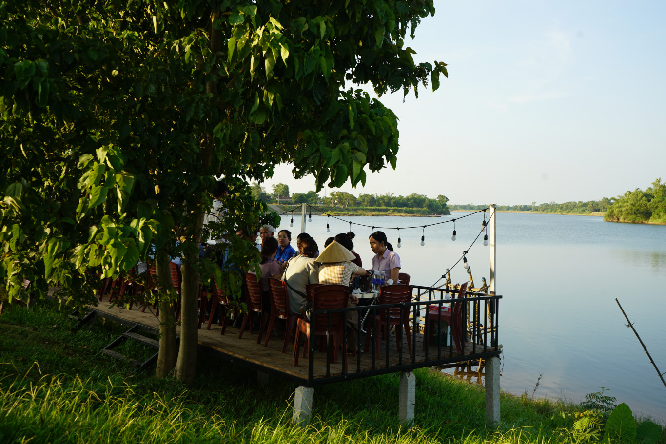 Mùa hè người ta dựng lên mấy căn chòi, đặt mấy bộ bàn ghế đơn sơ nằm sát mép sông. Ngồi chỗ ấy, vừa nhâm nhi chuyện trò, vừa có thể nhìn ra sông để ngắm Bến Ghềnh trong ánh chiều tà, gió từ ngoài sông lùa vào mát rượi.