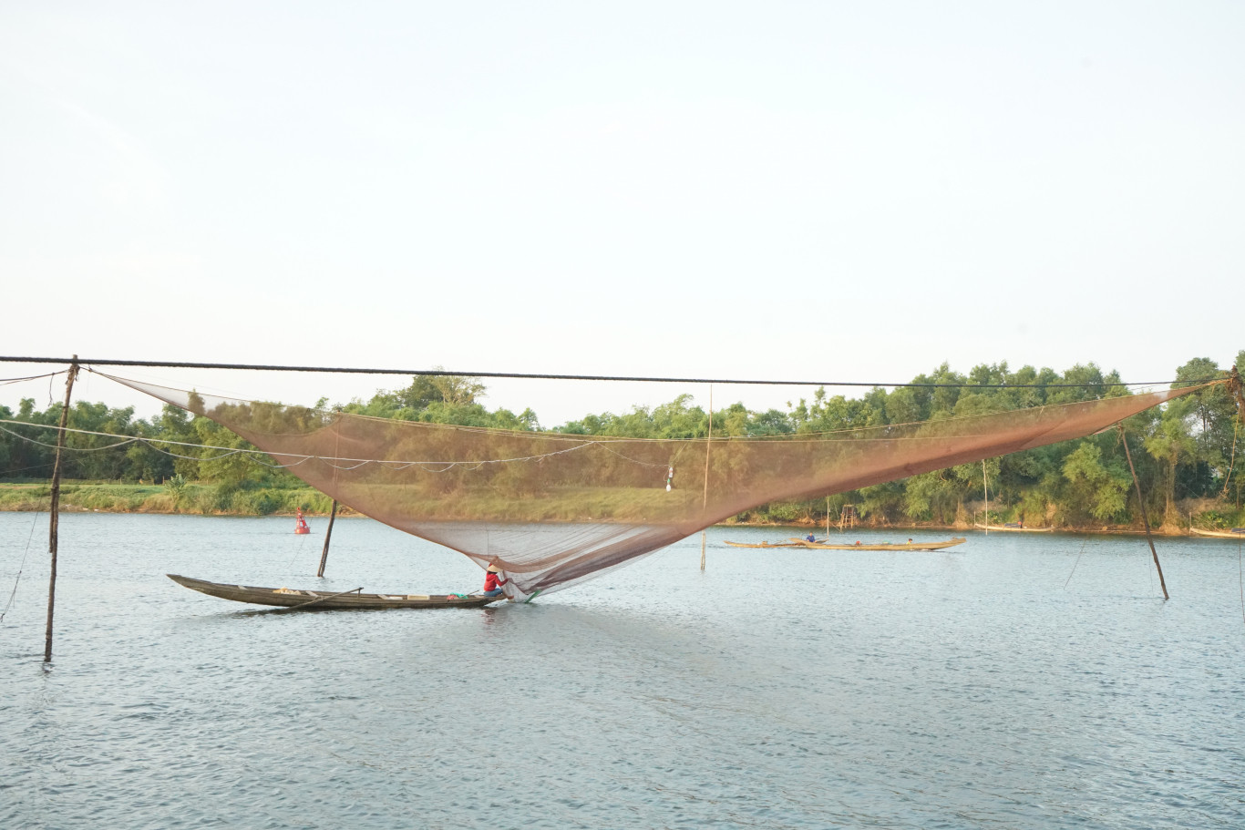 Dòng sông còn hào phóng ban cho nguồn cá tôm. Chiều xuống những chiếc thuyền nhỏ thả lừ, đặt vó. Sáng hôm sau nhấc lừ, cất vó lên cũng kiếm được vài ba ký cá lộn xộn và tôm... Cuộc sống sinh hoạt trên dòng sông này cứ bình yên và nhẹ nhàng.