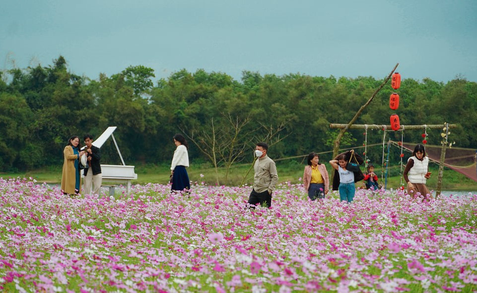Cạnh Bến Ghềnh có một bãi đất địa thế đẹp. Mùa xuân người ta trồng lên đó một vườn hoa rực rỡ, du khách nườm nượp tìm về ngắm hoa, chụp ảnh.