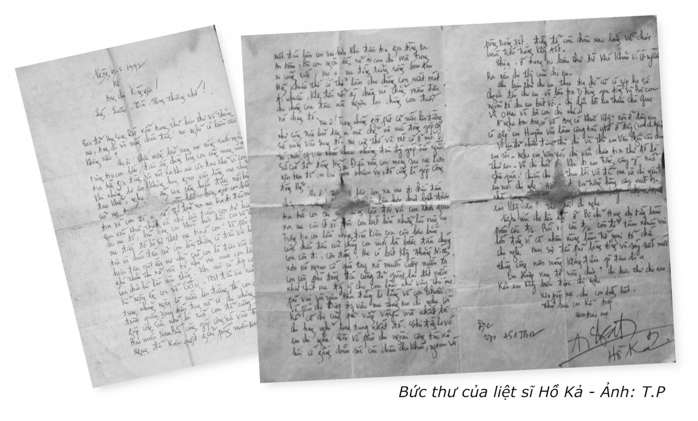 Trong cuộc trường chinh chống Mỹ cứu nước của dân tộc đã có biết bao lớp người vĩnh viễn ra đi không ngày trở lại. Máu xương, hồn phách của họ đã hòa chung vào lòng đất mẹ để cho hôm nay sỏi đá đổi màu, mầm xanh vươn tốt. Những bước chân vội vã chập chùng của đoàn quân ra trận ngày ấy có các chàng trai cô gái tuổi đời đang còn rất trẻ. Dẫu biết rằng “ra đi từ đó không về” nhưng tiếng gọi của non sông luôn thôi thúc người người cất bước. Có những con người “đi mãi” không lời trăn trối, chỉ để lại cho người thân những dòng thư viết vội dưới giao thông hào hay trên trận địa sát kề tay súng; để lại niềm tiếc thương vô hạn trong tiếng khóc nghẹn ngào của người mẹ chờ con lúc chiều về nơi cuối xóm. Bức thư của liệt sĩ Hồ Kã hiện trưng bày tại Bảo tàng Quảng Trị là một trong số những lá thư từ chiến trường mà người con, người em trai gửi về cho mẹ và chị gái ở trong hoàn cảnh như vậy.