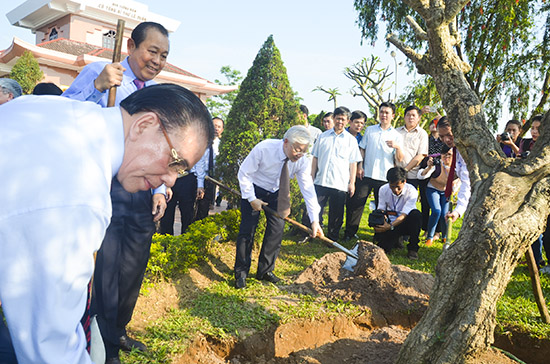 Tổng Bí thư Nguyễn Phú Trọng trồng cây tại nhà lưu niệm Tổng Bí thư Lê Duẩn