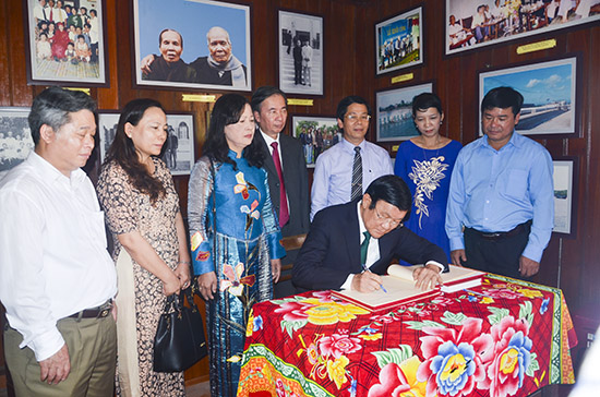 Đồng chí Trương Tấn Sang ghi sổ lưu niệm tại Nhà lưu niệm Phó Thủ tướng Trần Hữu Dực