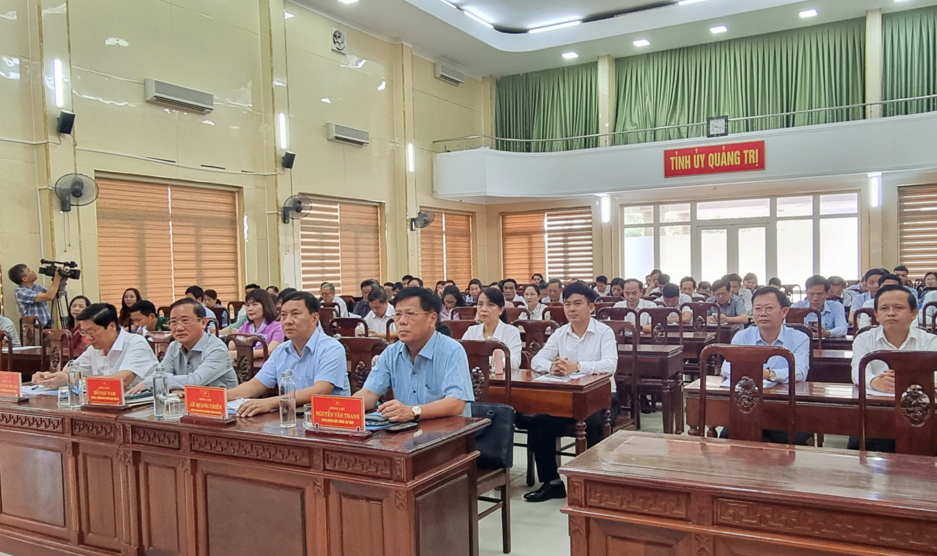 Trưởng Ban Tuyên giáo Tỉnh ủy Hồ Đại Nam chủ trì hội nghị tại điểm cầu Quảng Trị. Phó Chủ tịch Thường trực HĐND tỉnh Lê Quang Chiến; Trưởng Ban Tổ chức Tỉnh ủy Phan Văn Phụng; Giám đốc Công an tỉnh, Đại tá Nguyễn Văn Thanh tham dự hội nghị.