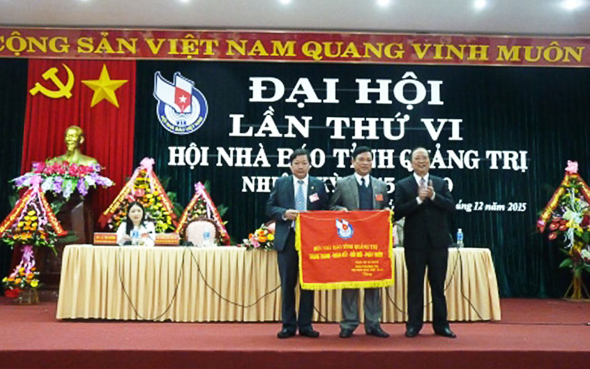 trao bức trướng của Hội Nhà báo Việt Nam cho Hội Nhà báo tỉnh Quảng Trị