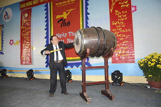 NSƯT Hoàng Sỹ Cừ đánh trống khai mạc Ngày thơ Việt Nam tại Quảng Trị