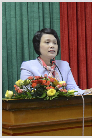 Bà Hồ Thị Thu Hằng, UVTV, Trưởng Ban Tuyên giáo TU phát biểu