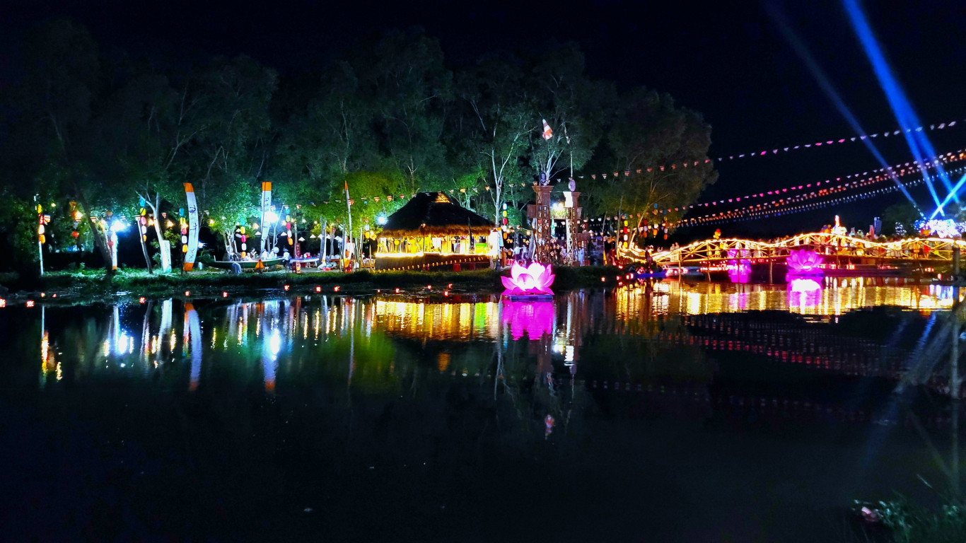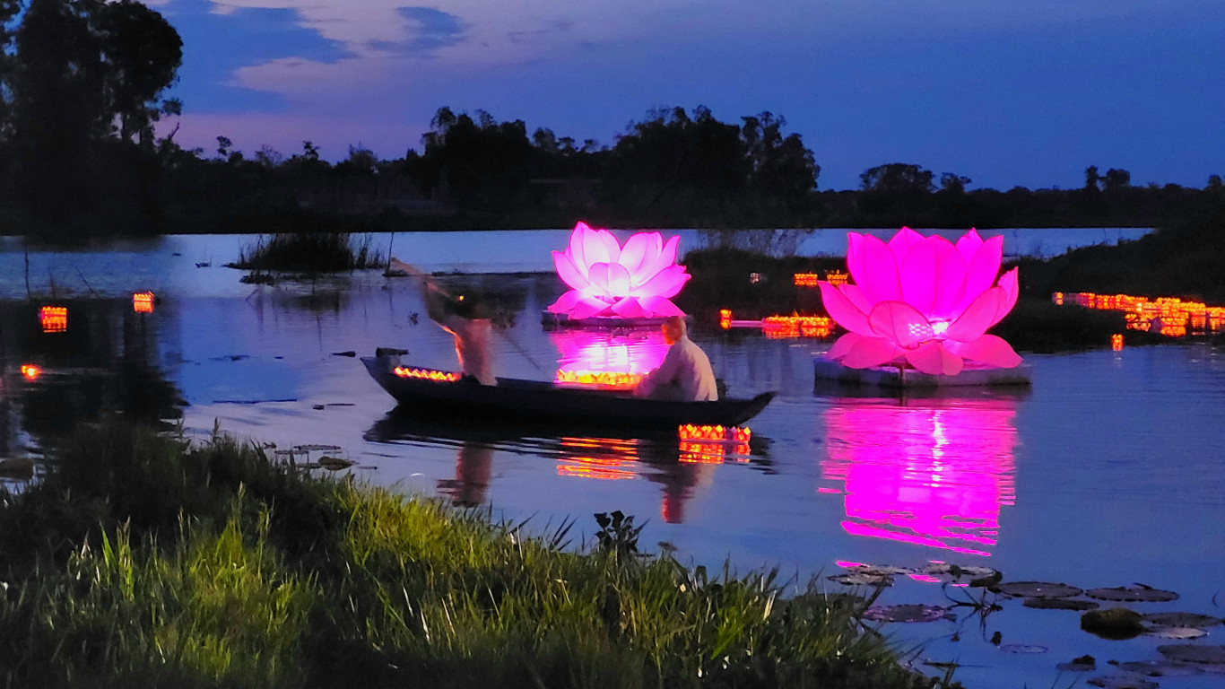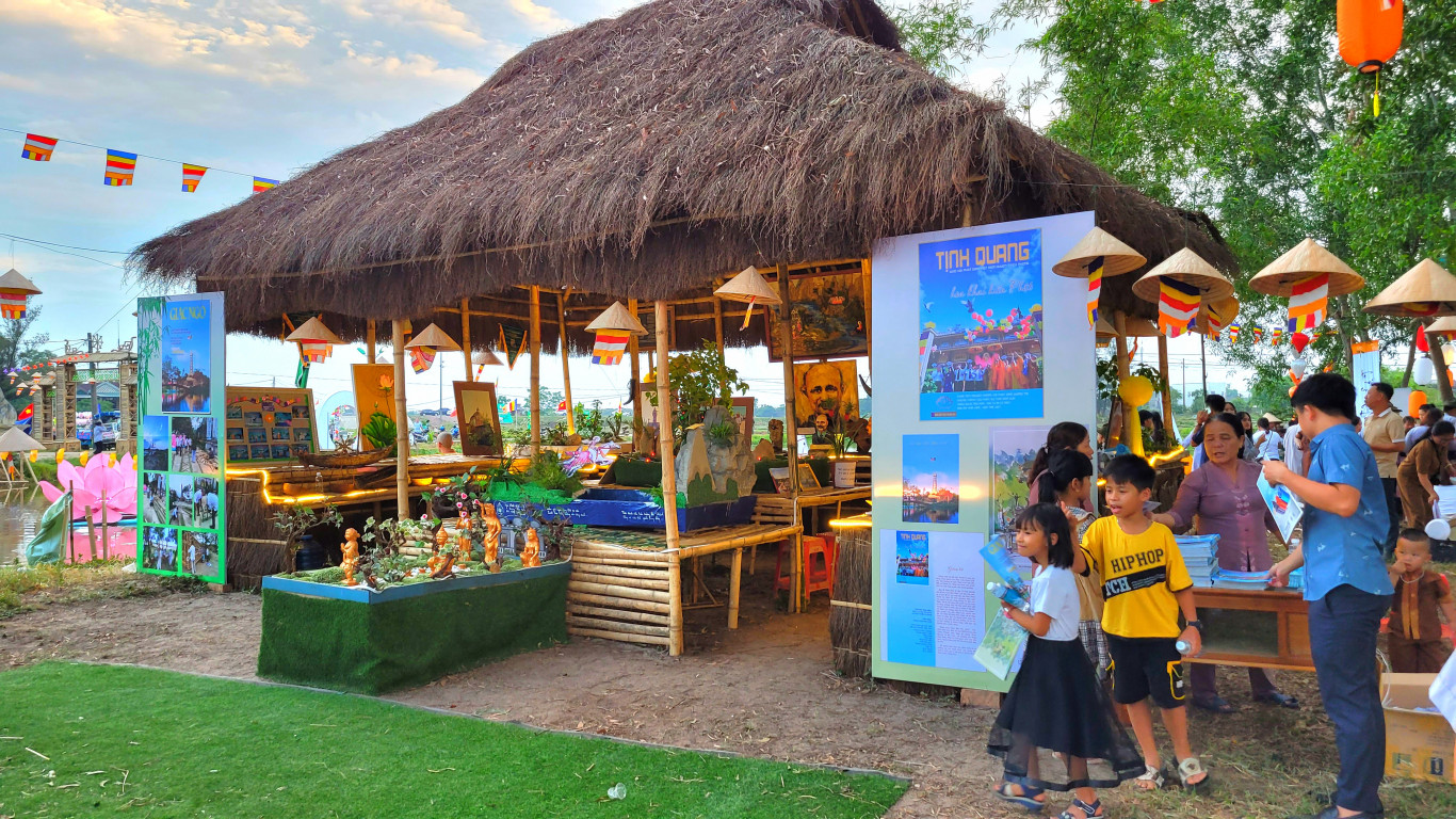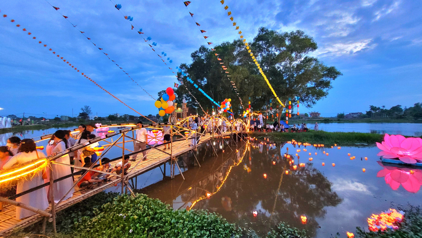 Trên dòng sông làng Lệ Xuyên, bảy đóa sen rực sáng ánh đèn được bố trí nổi giữa mặt nước để tượng trưng cho bảy bước chân ngày Đức Phật đản sanh. Bên gò đất là triển lãm nghệ thuật mô hình cuộc đời Đức Phật từ sơ sanh, xuất gia, thành đạo. ![]() Lễ chính thức diễn ra chiều ngày mùng 8 tháng Tư Quý Mão (26/5/2023) có sự tham dự của lãnh đạo giáo hội, lãnh đạo chính quyền, mặt trận tỉnh Quảng Trị, huyện Triệu Phong và đông đảo phật tử các giới. Điểm nhấn của chương trình là thả bồ câu, bóng bóng nguyện cầu hòa bình, chúng sanh an lạc và pháp hội hoa đăng thắp sáng dòng sông. ![]() Cũng nhân dịp này giáo hội xuất bản ấn phẩm Tịnh Quang số đầu tiên, nội dung thông tin về các hoạt động phật sự, các nghiên cứu lịch sử văn hóa, văn học nghệ thuật. Bên cạnh đó còn có các chương trình của Gia đình Phật tử như: cắm trại, hội thi Theo dấu chân Phật, văn nghệ chủ đề Hương sen đầu hạ... tạo nên một không gian lễ hội đa sắc, sinh động, hấp dẫn. ![]() | ||