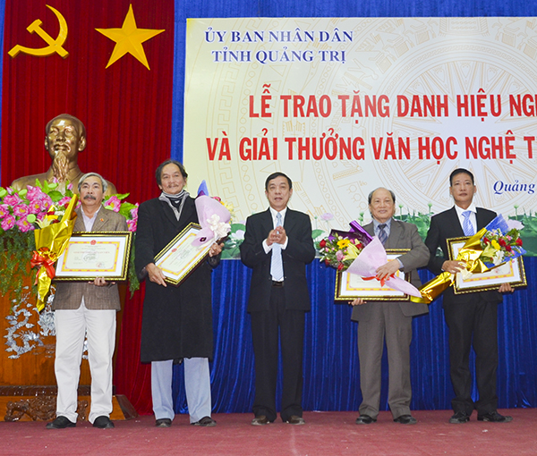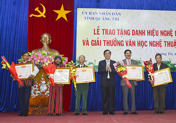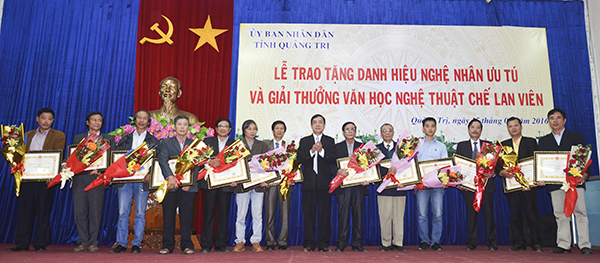 TCCV - Ngày 15 - 01 - 2016, UBND tỉnh Quảng Trị đã long trọng tổ chức Lễ trao tặng danh hiệu Nghệ nhân ưu tú và Giải thưởng Văn học Nghệ thuật Chế Lan Viên. Dự lễ, có ông Nguyễn Đức Chính - Phó Bí thư Tỉnh ủy, Chủ tịch UBND tỉnh; ông Mai Thức - UVTV Tỉnh ủy, Phó Chủ tịch UBND tỉnh; đại diện lãnh đạo UBMTTQVN tỉnh; Ban Tuyên giáo Tỉnh ủy; Sở VHTT&DL; Sở KH&CN; Hội VHNT; Hội Di sản văn hóa tỉnh; thành viên các hội đồng nghệ thuật; các nghệ sĩ, tác giả được trao tặng và thân nhân…