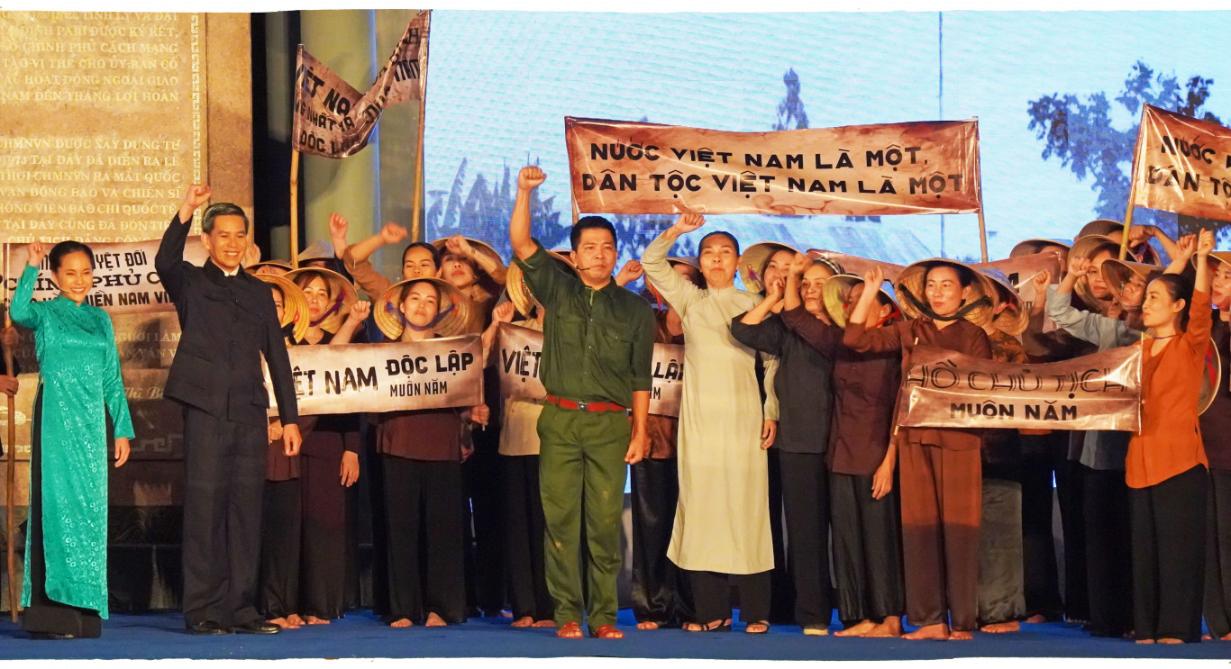 Ngay sau lễ kỷ niệm là chương trình nghệ thuật sân khấu thực cảnh "Một Chính phủ khát vọng hòa bình" được dàn dựng công phu | ||