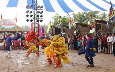 Múa lân chào mừng.