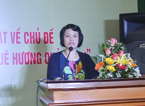 Bà Hồ Thị Thu Hằng - UV BTV TU, Trưởng Ban Tuyên giáo Tỉnh ủy phát biểu