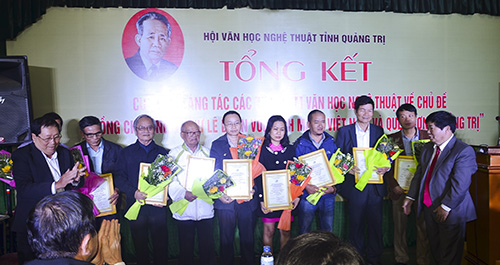 Ngày 30/3/2017, Hội VHNT tỉnh Quảng Trị đã tổ chức Tổng kết cuộc thi sáng tác các tác phẩm Văn học nghệ thuật về chủ đề “Đồng chí Tổng Bí thư Lê Duẩn với cách mạng Việt Nam và quê hương Quảng Trị”. Đến dự có các đồng chí: Mai Thức – UV BTV TU, Phó Chủ tịch UBND tỉnh; Hồ Thị Thu Hằng - UV BTV TU, Trưởng Ban Tuyên giáo Tỉnh ủy; đại diện lãnh đạo các cơ quan ban ngành; các tác giả đạt giải và hội viên Hội VHNT tỉnh.