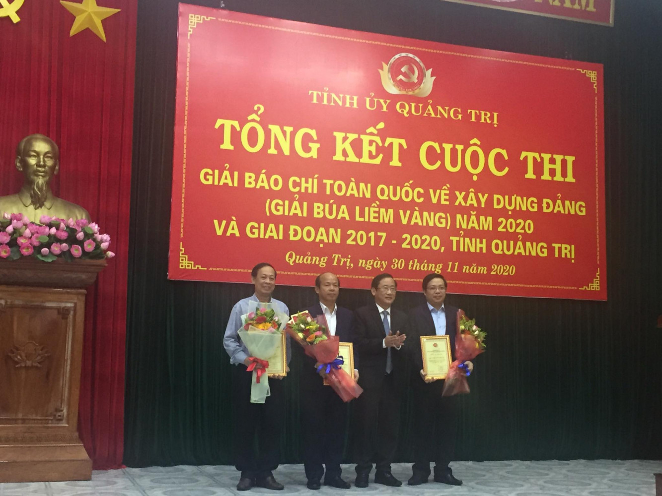 (TCCVO) Hôm nay (30/11/2020), Ban Tổ chức Cuộc thi Giải Báo chí toàn quốc về xây dựng Đảng (Búa liềm vàng) tỉnh Quảng Trị tổ chức hội nghị tổng kết, trao giải Cuộc thi Giải Búa liềm vàng năm 2020 và tổng kết giải giai đoạn 2017-2020. Trưởng Ban Tuyên giáo Tỉnh ủy, Phó Trưởng ban thường trực Ban Tổ chức Cuộc thi Giải Búa liềm vàng tỉnh Quảng Trị Hồ Đại Nam tham dự.