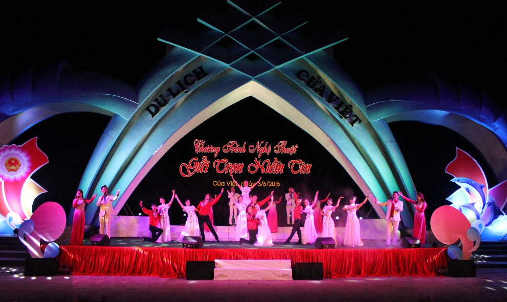 Tối 3/6/2016, tại Khu Dịch vụ - Du lịch Cửa Việt (huyện Gio Linh, tỉnh Quảng Trị), Sở Văn hóa, Thể thao và Du lịch tổ chức Chương trình nghệ thuật với chủ đề “Gửi trọn niềm tin” chào mừng thành công của cuộc bầu cử đại biểu Quốc hội khóa XIV và đại biểu HĐND các cấp nhiệm kỳ 2016-2021; hưởng ứng Tuần lễ biển và hải đảo Việt Nam năm 2016...