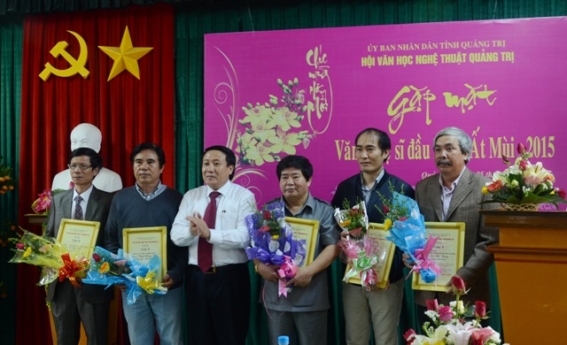 Sáng ngày 05/3/2015, Hội VHNT Quảng Trị đã tổ chức buổi Gặp mặt văn nghệ sĩ đầu Xuân Ất Mùi 2015. Đến dự có các đồng chí: Hà Sỹ Đồng – Phó chủ tịch UBND tỉnh; Nguyễn Vũ Quyền – Phó trưởng Ban Tuyên giáo TU; Nguyễn Hữu Thắng – Giám đốc sở VHTT&DL; đại diện các phòng ban của tỉnh, cùng đông đảo văn nghệ sĩ tỉnh nhà.