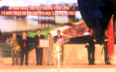 Tối 25/8/2014, Huyện ủy, UBND và UBMTTQ Việt Nam huyện Vĩnh Linh, tỉnh Quảng Trị đã trọng thể tổ chức 60 năm ngày truyền thống (25/8/1954-25/8/2014) và đón nhận Huân chương Độc lập hạng nhất của Chủ tịch nước Trương Tấn Sang trao tặng