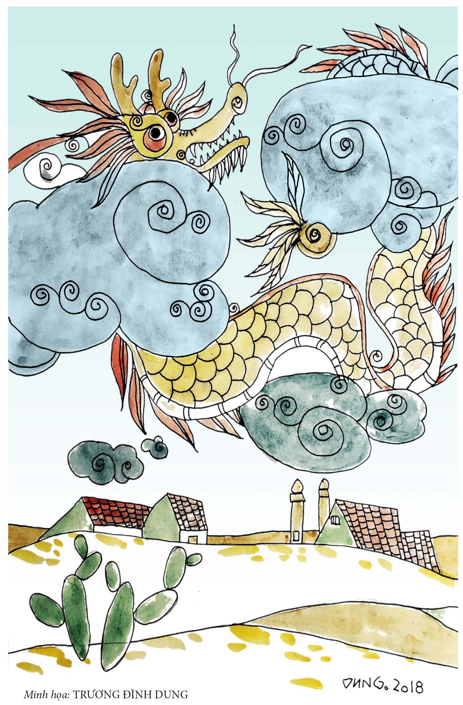Tôi được nghe kể nhiều về loài rồng, một giống loài mạnh mẽ vô song, biểu tượng linh thiêng của vương quyền. Tương truyền nó ở trên trời và trong lòng biển. Rồng được họa ở cả trên áo bào của vua, trên những cái vạc khổng lồ. Vậy mà chưa bao giờ thấy được một con rồng thật, có thể sờ thấy được. Nhưng khi cầm thanh gươm nhà chúa trên tay, cảm giác như đã chạm vào những lớp vẩy của nó. Cha nói con cá chép vượt vũ môn thì thành rồng. Xưa ở làng Ái Tử, có con cá chép to nhất sông, phải lưới mấy chục thuyền chài quành lại mới bắt được nó. Nó chỉ cần há miệng là một chiếc thuyền theo dòng nước xoáy trôi tuột vào bụng. Loài chép ấy sẽ vượt vũ môn, sẽ thành rồng. Tin chúa đến lập Dinh Cát, cá chép được thả và chắc là đã hóa rồng đâu đó. Có thể cha đã nói điều gì đó không phải nhưng tôi vẫn cảm giác đó là một sự thật. Cả điển tích thiêng liêng lẫn câu chuyện lịch sử khiến hai từ Ái Tử gieo vào lòng tôi sự đồng vọng thao thiết. Rồng là gì hở cha? Tôi buột miệng hỏi. Con sẽ thấy sức mạnh của rồng khi cha kể chuyện dưới đây.