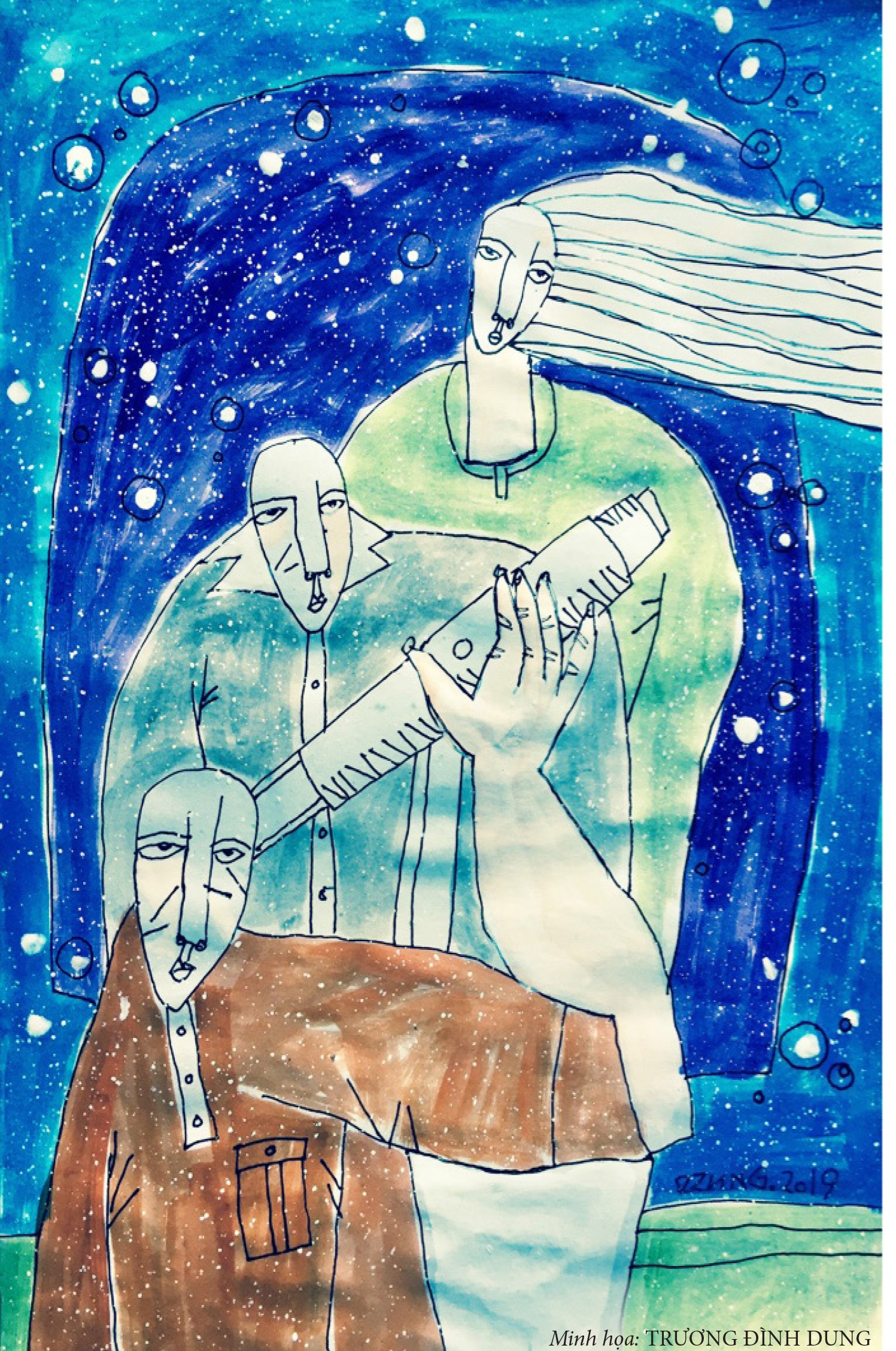 Đoàn thực tập về lại Sài Gòn sau ba ngày quần bố tôi mệt đến bở hơi tai. Tám trợ lý, nhân viên của bố cũng phải làm việc hết công suất để phục vụ cho hơn trăm con người đang háo hức nghiên cứu các vì sao qua kính thiên văn hiện đại. Bố mệt nhưng rất vui vì đã hoàn thành vai trò làm “lực hấp dẫn” cho các ước mơ bay đến chân trời khoa học bao la, kỳ bí. Bố là người thầy tài ba, tận tụy được cả đoàn thực tập ngưỡng mộ, trọng vọng. Mái tóc nghệ sĩ bạc quá nửa và gương mặt mãn nguyện của bố như được tưới thêm hạnh phúc khi chỉ còn hai cha con, tôi mở loa cho bố cùng nghe cú điện thoại của mẹ từ Sài Gòn: