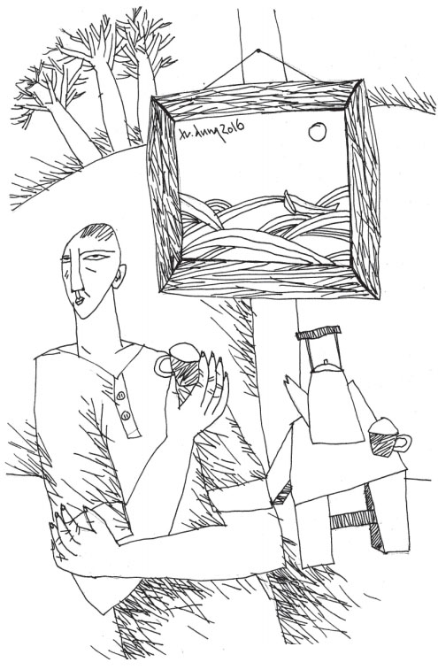 Cô và thằng nhóc đã đi. Anh nhìn đĩa bánh cuốn, giật mình khi thấy mấy con kiến đã bò men miệng đĩa. Có lâu la gì, anh vừa tập thể dục chưa đến mười lăm phút, kể từ lúc cô gọi. Nhà có thằng nhỏ, anh và cô căm thù đám kiến. Có lần chúng đã chích thằng bé khiến nó khóc suốt một đêm, dù anh và cô đã xức cho nó đến nửa chai dầu xanh chống côn trùng.