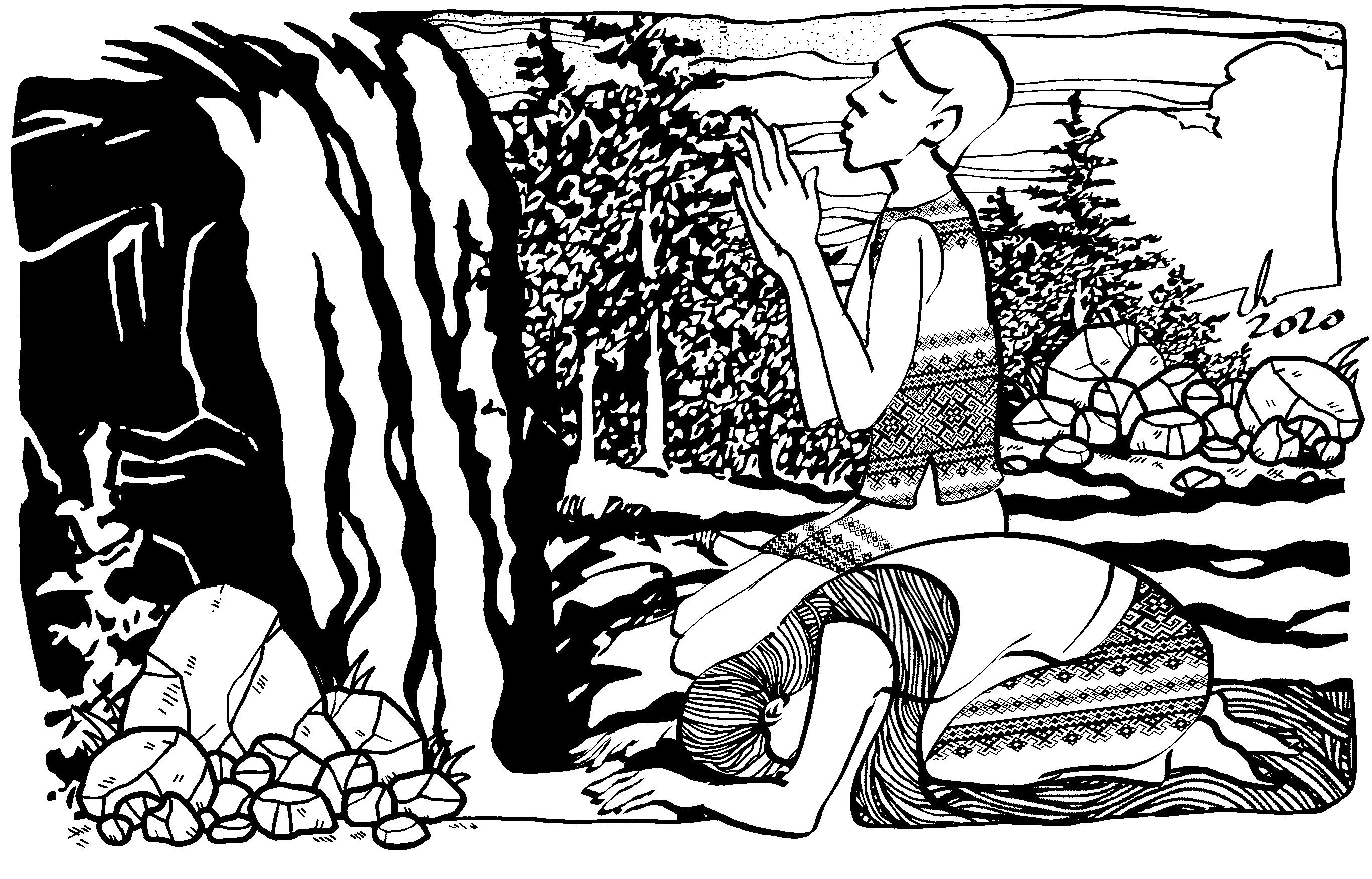 Ải à, cố ăn hết bát cháo cho khỏe lại đi, sắp đến ngày cúng Xên bản rồi. Mọi người đã góp tiền mua được con trâu to để thịt cúng, ải phải khỏe để còn mặc cái áo vía đỏ ngày cúng chứ...