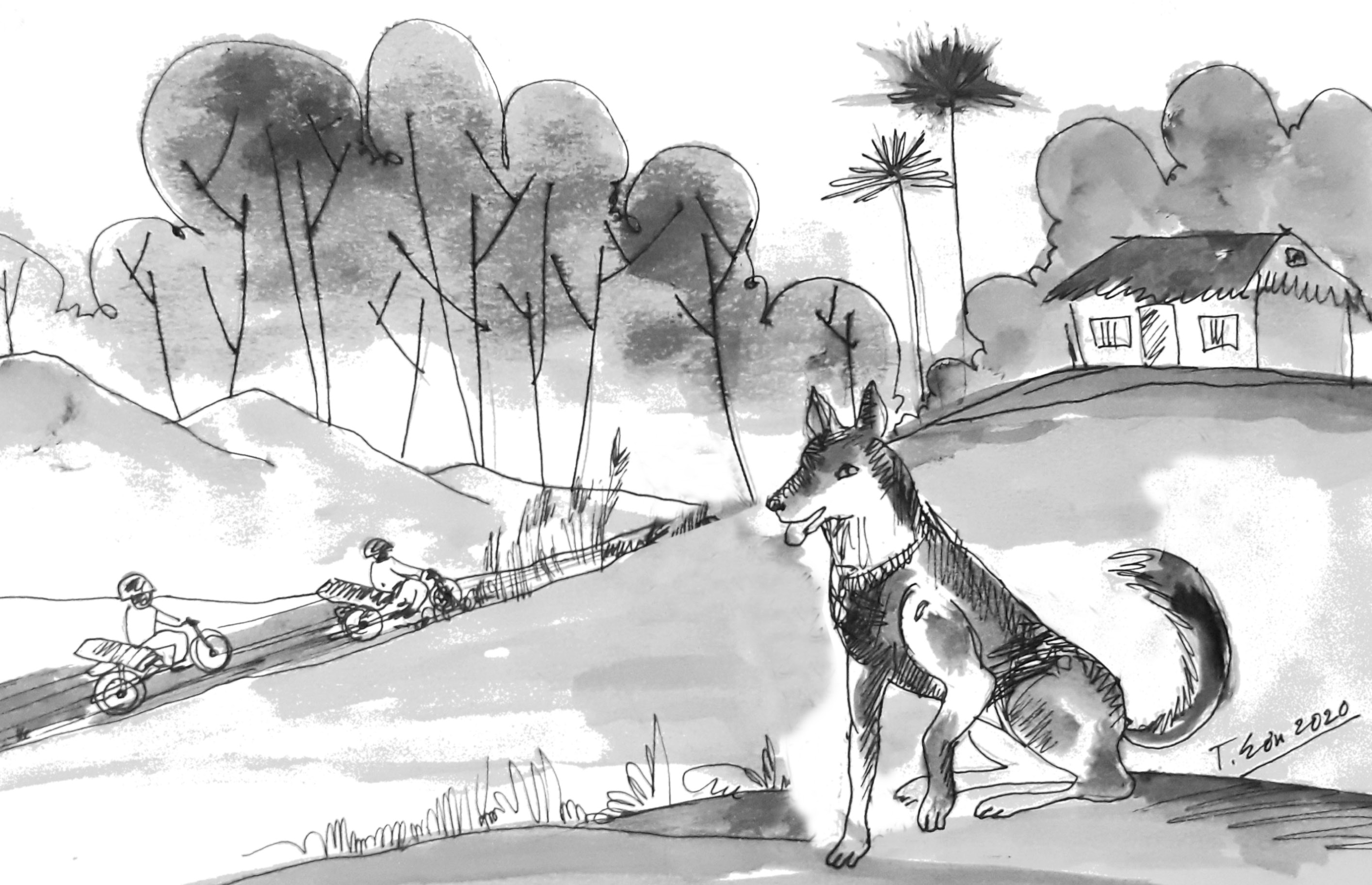 Ông ở một mình trong cái chòi giữa rừng sâu cùng với đàn chó trung thành. Lần lên đây, tôi đã phải chết khiếp vì những con chó to như những con bê từ trong chòi vừa sủa vừa lao ra, hướng về phía tôi.