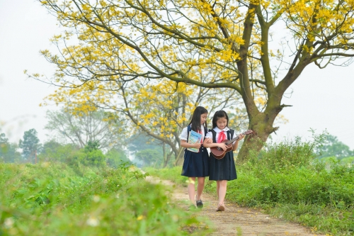 Có đàn trẻ nhỏ yên bình dạo chơi