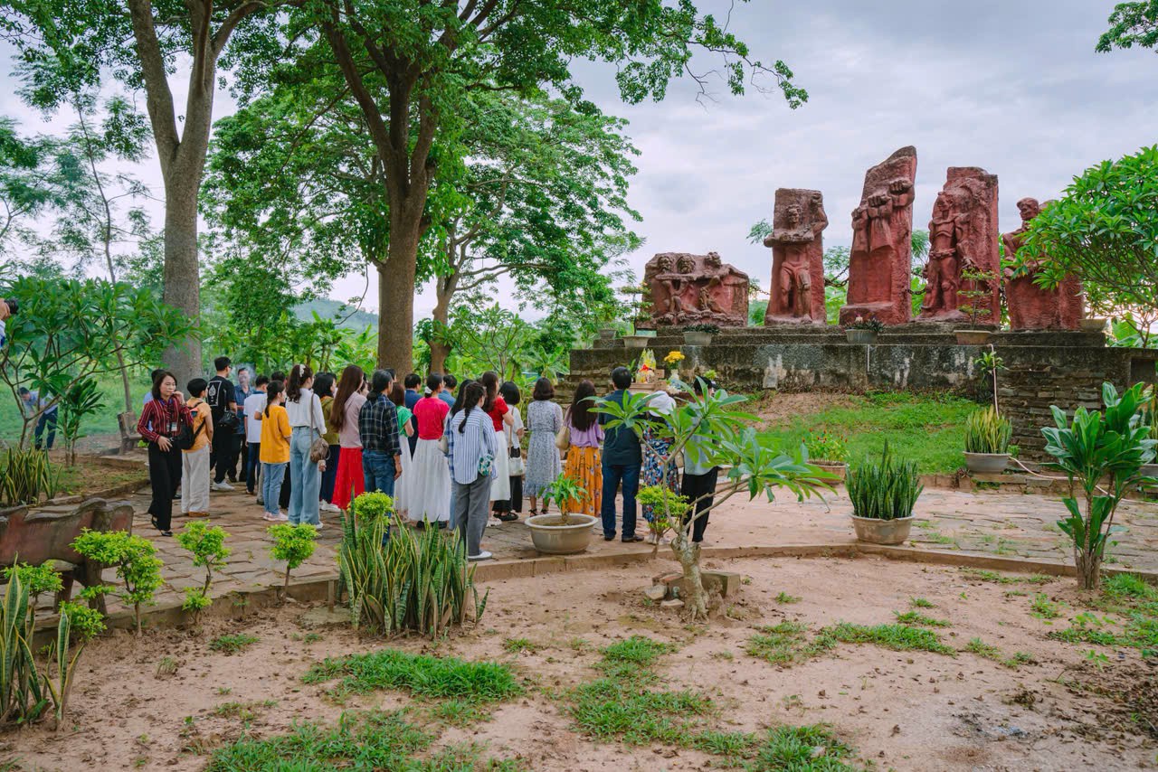 Đoàn tham quan nhà bảo tàng tại di tích Sân bay Tà Cơn.